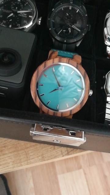 La montre est plus sombre que sur la photo, la couleur est sale-turquoise