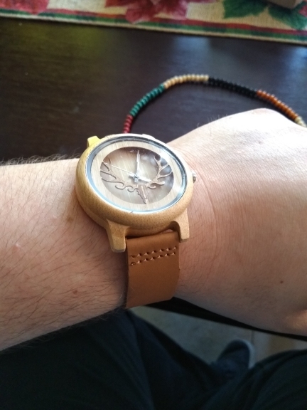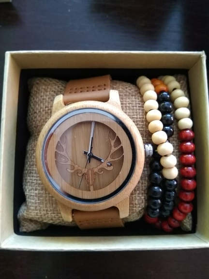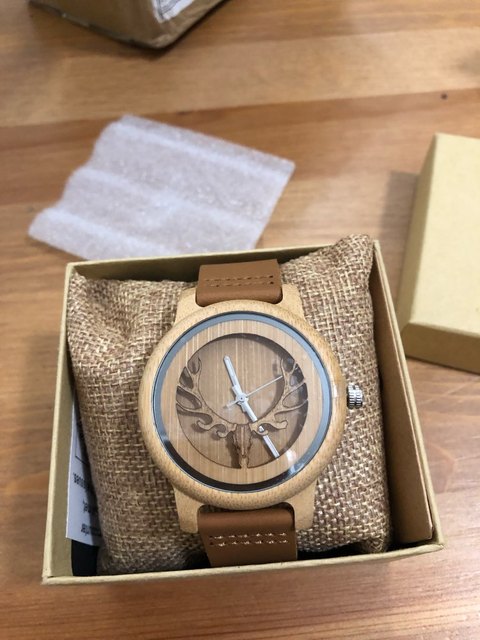 Tu ouvres la boite, ça sent le cuir et le bois. La montre est parfaitement faite, léger, sur la main. Pas la première fois que je commande chez ce vendeur! Je recommande à tout le monde!