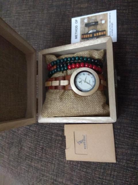 très agréablement surpris par l’efficacité de la livraison. Le produit correspond pleinement au descriptif. La montre est très belle, élégante et absolument sans poids… La montre est arrivée dans une boîte en bois de marque. Tout est très classe. Merci BOBOBIRDS pour l’excellente marchandise.